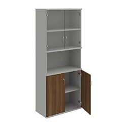 Kombinovaná skriňa - dvere/nika. Kancelárske skrine STRONG majú robustnú konštrukciu a vyššiu nosnosť políc ako bežné kancelárske skrine.V ponuke sú skriňové moduly s výškou 185 cm, 111 cm alebo 74 cm a šírky 80 cm alebo 40 cm. Hĺbka všetkých modelov skriňového radu STRONG je 40 cm.Chrbát, vyrobený z 8 mm hrubých dosák, je obojstranne pohľadový, takže skrine môžete použiť ako priestorový deliaci prvok. Hrúbka samotných políc je 25 mm, čo znamená nosnosť 80 kg na 1 policu.Korpusy, dvierka a police skríň sú olepené odolnou 2mm ABS hranou, ktorá garantuje dostatočnú ochranu proti poškodeniu.