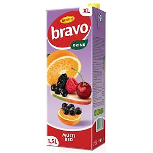 ZLOŽENIE: voda, 12% viacdruhová ovocná šťava z koncentrátu (jablko, višne, čierne ribezle, pomaranč, baza, malina, černica), cukor, kyselina: kyselina citrónová, modifikovaný škrob, rastlinné oleje (kokosový, repkovký), aróma, vitamíny (niacín, kyselina pantotenová, vitamín B6, biotín, vitamín B12), farbivá: karotény, Allura červená AC, antioxidant: kyselina askorbová. Allura červená AC: Môže mať nepriaznivé účinky na činnosť a pozornosť detí.
